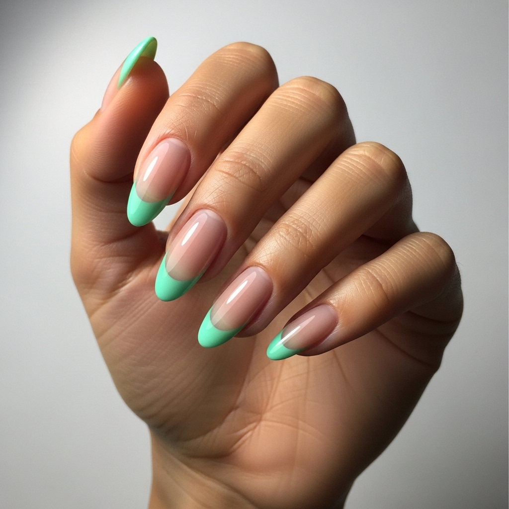 This manicure works well for people who prefer minimalist beauty but still want a fashionable detail. The micro French tip trend feels refined and comfortable for everyday wear while the mint tone introduces a light spring color. The result is clean, modern, and effortlessly chic.