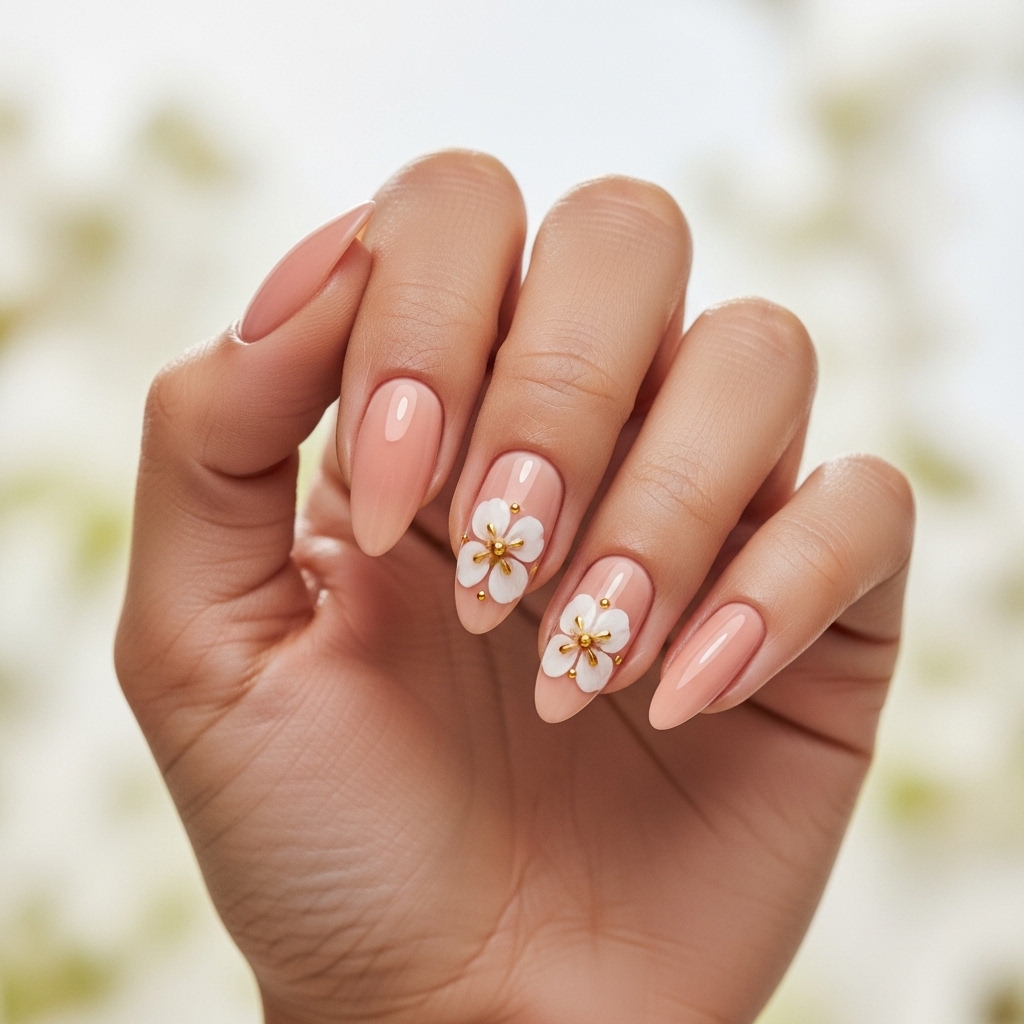 This nail look is perfect for seasonal celebrations, outdoor events, or weekend getaways. Floral nail art always returns during spring, but keeping the design minimal allows the manicure to feel elevated rather than overly decorative. The peach tone adds warmth while the blossoms introduce a feminine artistic touch.