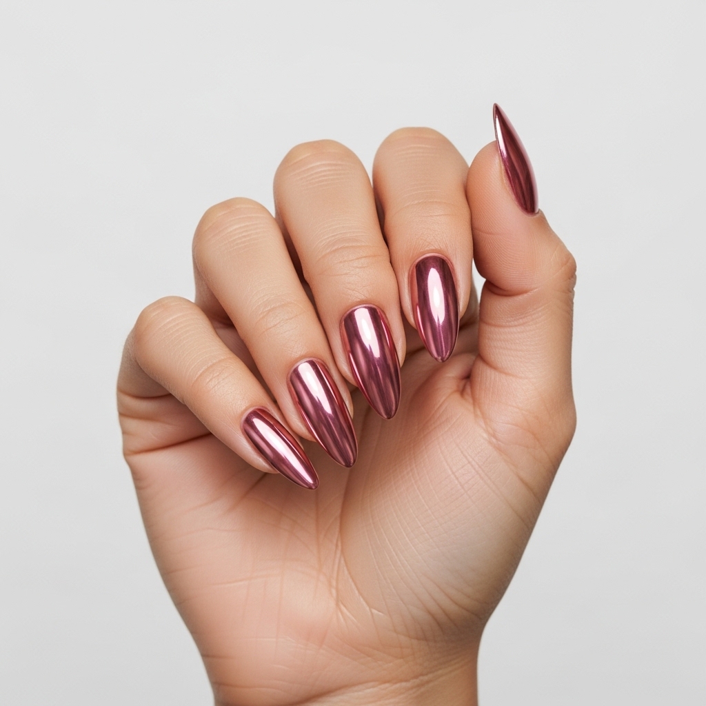 This design feels perfect for evenings out, spring weddings, or stylish social events. Despite its glamorous shine, the neutral color keeps the manicure balanced and easy to pair with different outfits. The chrome trend continues to dominate beauty editorials because it transforms simple shades into modern statement nails.