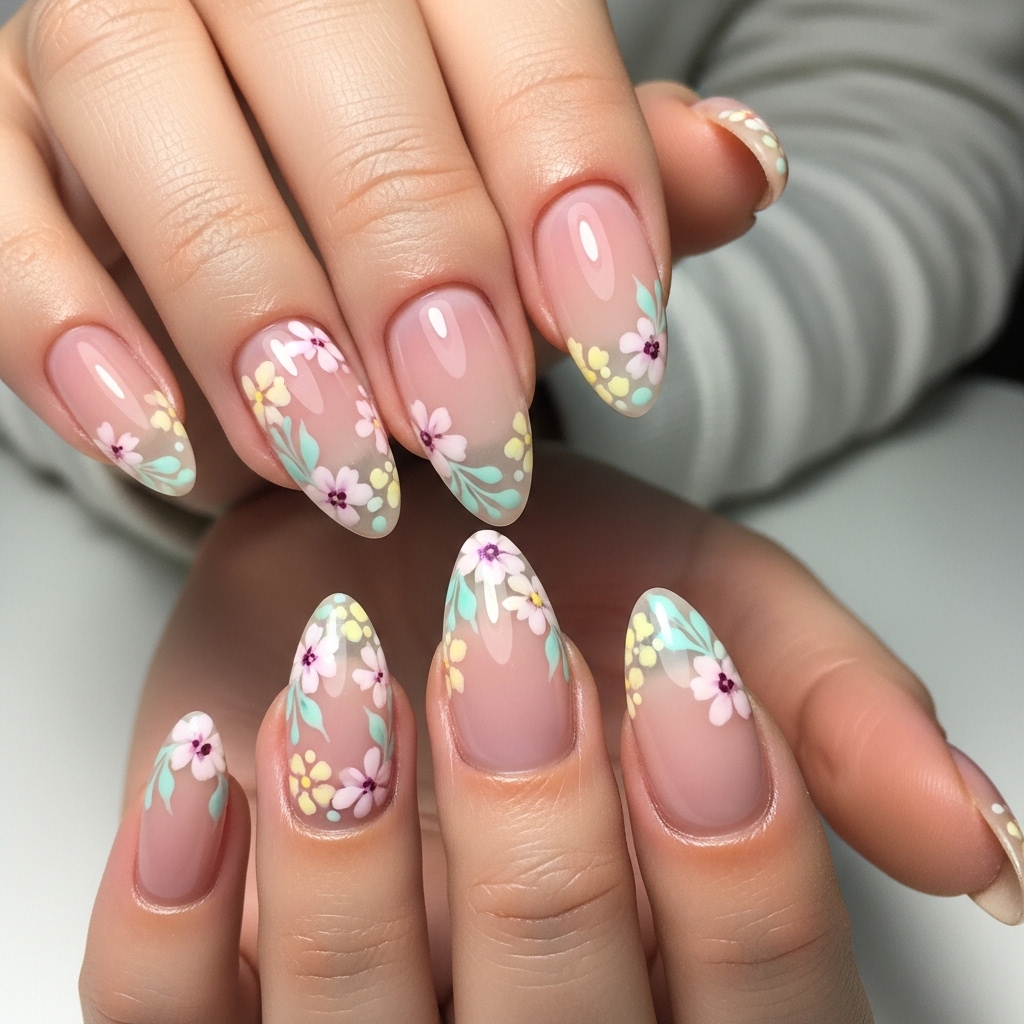 The restrained floral placement makes it ideal for professional environments while still embracing seasonal charm. It feels artistic without being busy, offering a perfect blend of softness and sophistication. Almond shapes enhance the airy effect and remain comfortable for everyday life.