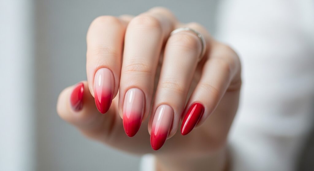 Soft Ombre Red Nails