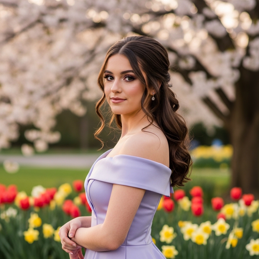 Ideal for outdoor proms or modern venues, this hairstyle feels effortless and youthful. The slightly tousled finish keeps it comfortable and low maintenance, while still aligning with current beauty trends that celebrate natural movement and soft texture.