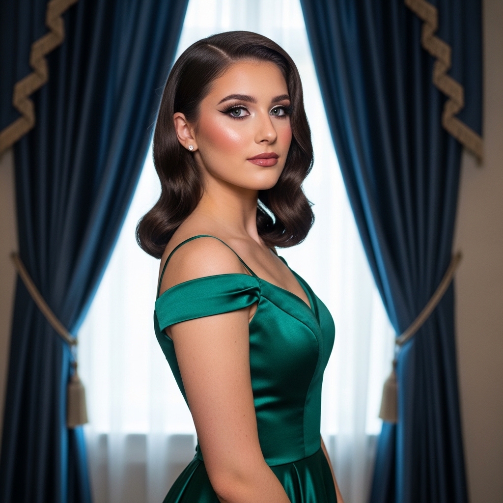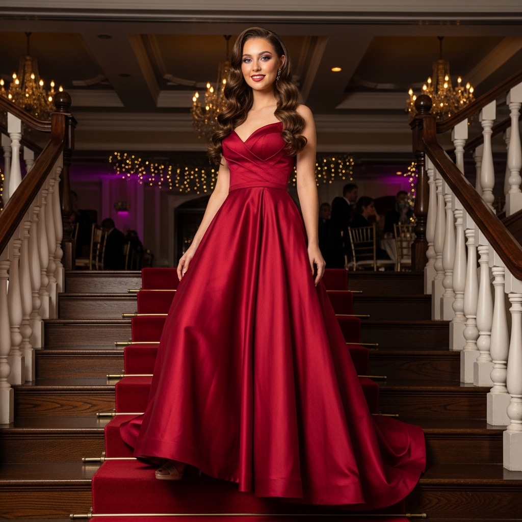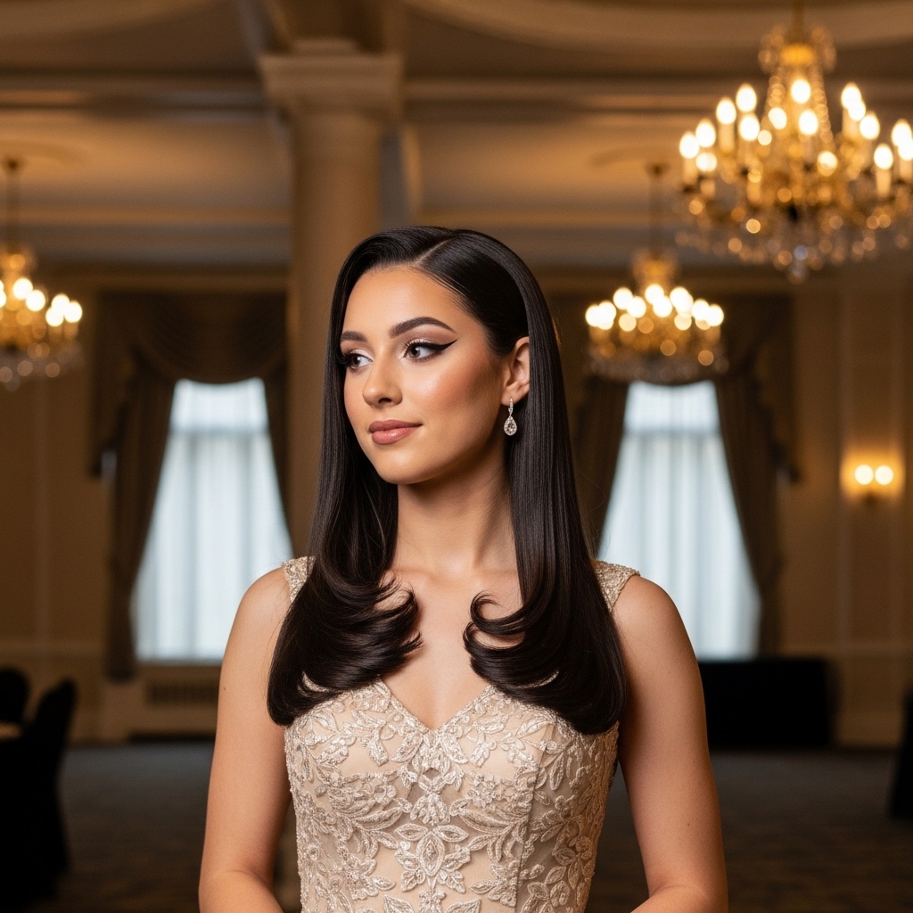 Ideal for satin or velvet prom gowns, this look feels red carpet ready without being overdone. The side sweep adds drama while the manageable length ensures comfort. It offers classic glamour updated for 2026 trends.