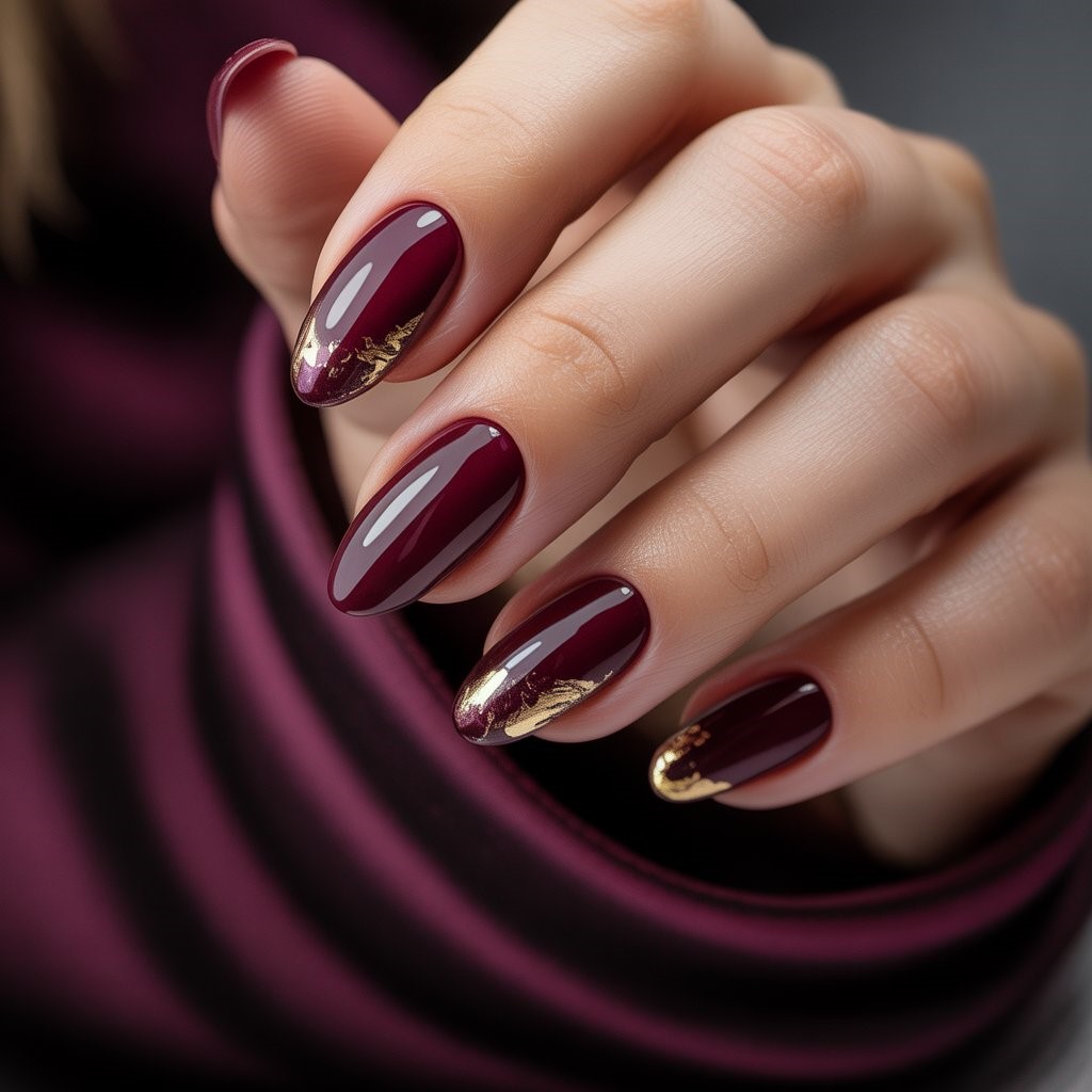 Rich burgundy shades paired with glossy or matte finishes create a dramatic yet refined manicure. Occasionally accented with gold foil or subtle heart motifs, this look is perfect for winter evenings and formal Valentine outings. The deep color feels luxurious and mature, while the minimal embellishments keep it current. Comfortable to wear and easy to maintain, it’s a stylish option for those who want something bold without leaning overly festive.
