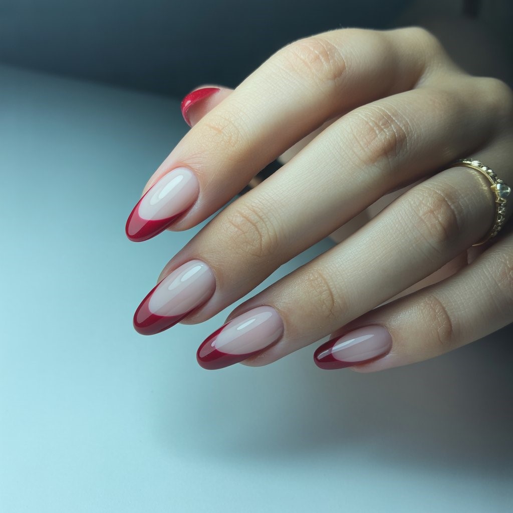 A twist on the traditional French manicure, this look replaces white tips with bold crimson. Sometimes paired with a nude or pink base, it feels contemporary and stylish. Ideal for dinner dates or fashion-forward events, it balances classic structure with modern color. The clean lines ensure comfort and easy wear, while the red tips keep the look festive and seasonally appropriate.