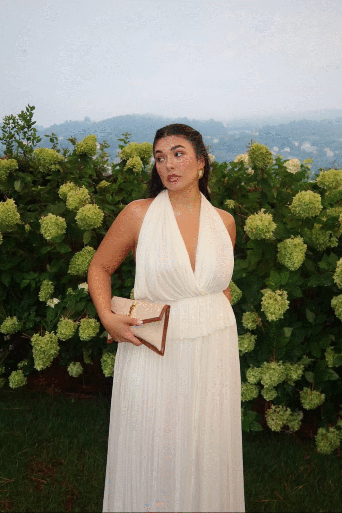 Effortless and fresh, this outfit captures the essence of easy elegance. The tiered silhouette adds movement and texture, making it perfect for daytime celebrations that call for something chic yet relaxed.
