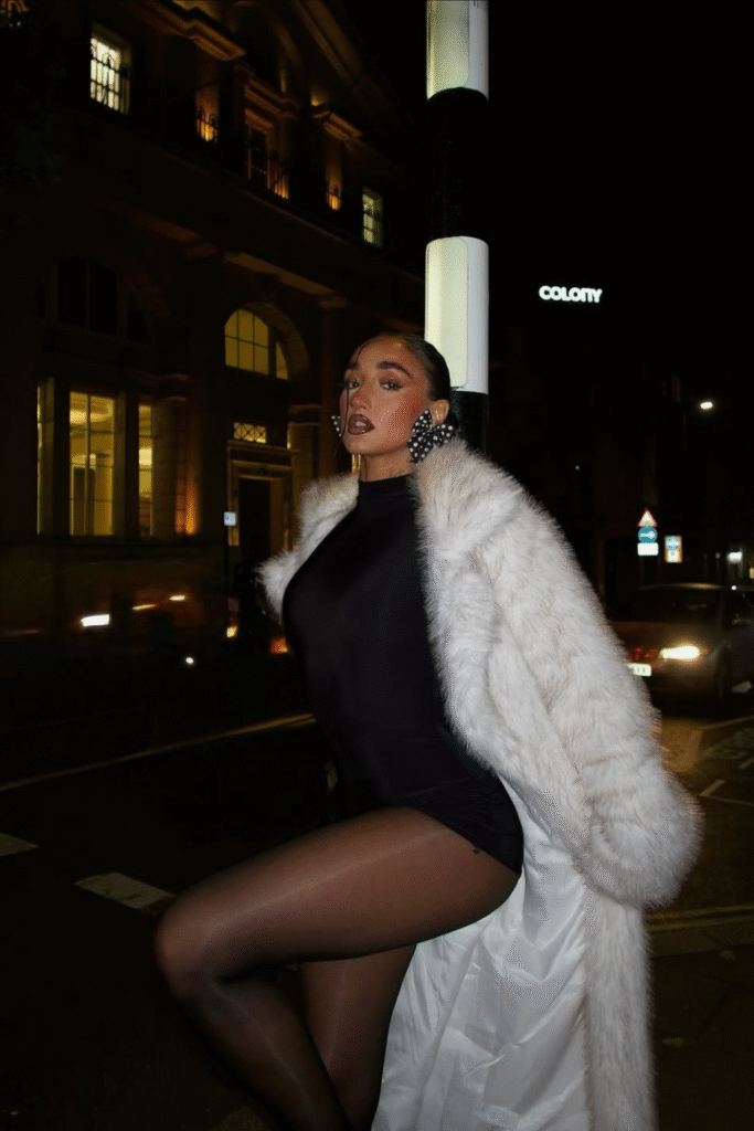 A perfect mix of seduction and sophistication, this look captures the essence of modern glam. The satin bodysuit hugs your silhouette while the faux fur coat adds texture and depth, making it ideal for chic lounges or upscale bars. It’s effortlessly bold — the kind of outfit that speaks confidence without saying a word, perfect for a baddie who owns every room.