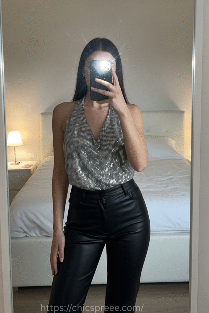 Go full glam with a sequin mini dress in gold, silver, or rose gold. Pair with strappy heels, a sleek clutch, and soft curls for a look that lights up the room.