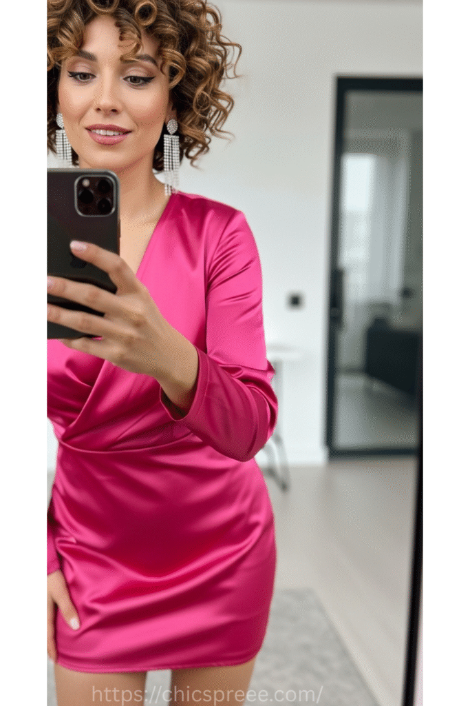 Channel Barbie with a hot-pink satin mini. Pair with rhinestone heels, glossy lips, and playful curls for the ultimate girly-glam vibe.