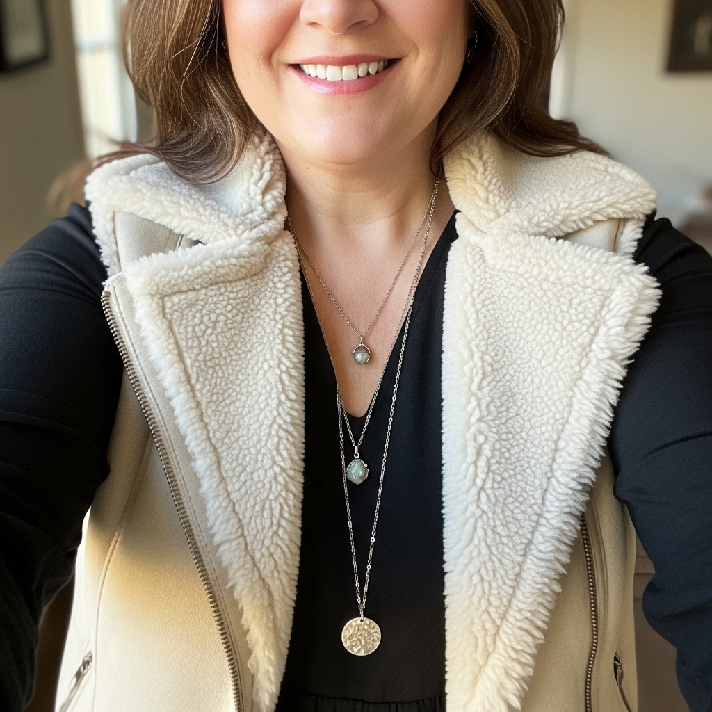 A shearling vest layered over a simple dress brings warmth and coziness while maintaining boho appeal. The textures add visual interest, and pairing with knee-high boots keeps the outfit fall-appropriate. This look is ideal for crisp mornings, coffee dates, or casual evenings. The vest makes the outfit unique without overwhelming it, allowing you to balance comfort and style. It’s a rustic yet chic way to embrace bohemian fall fashion.