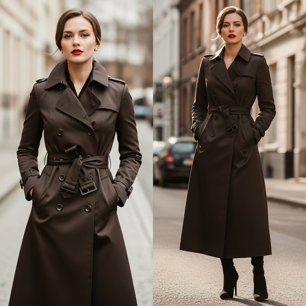 A dark brown trench coat brings drama and elegance to fall fashion. Style with straight-leg jeans, a white blouse, and loafers for a balanced casual-classy vibe. This look is functional, warm, and polished all at once.