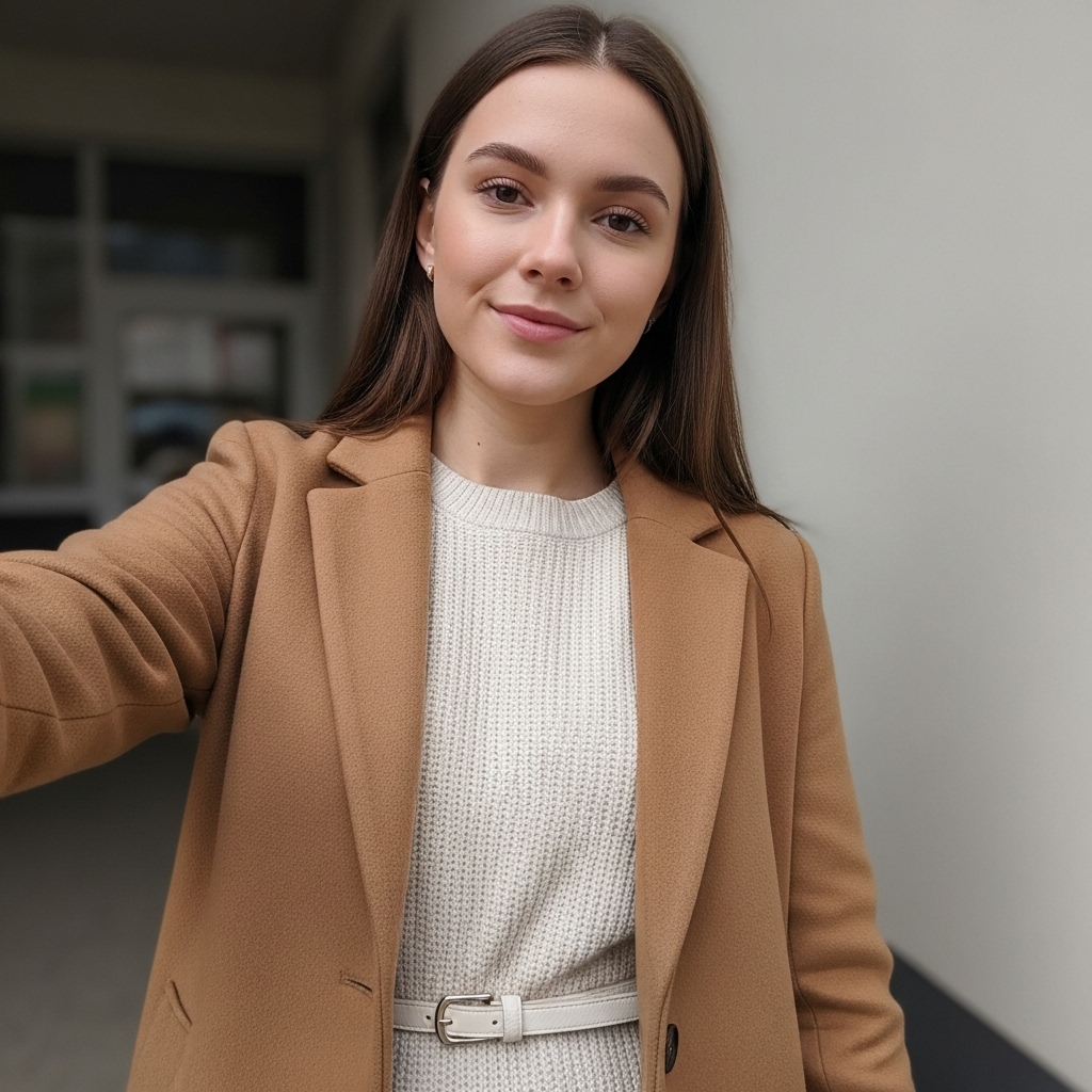 A camel-toned coat layered over a knit dress creates chic, old-money-inspired style. Choose a ribbed cream or taupe knit and cinch the waist with a slim belt. Add pointed boots to elevate the look. Perfect for chilly mornings when you want cozy and classy together.
