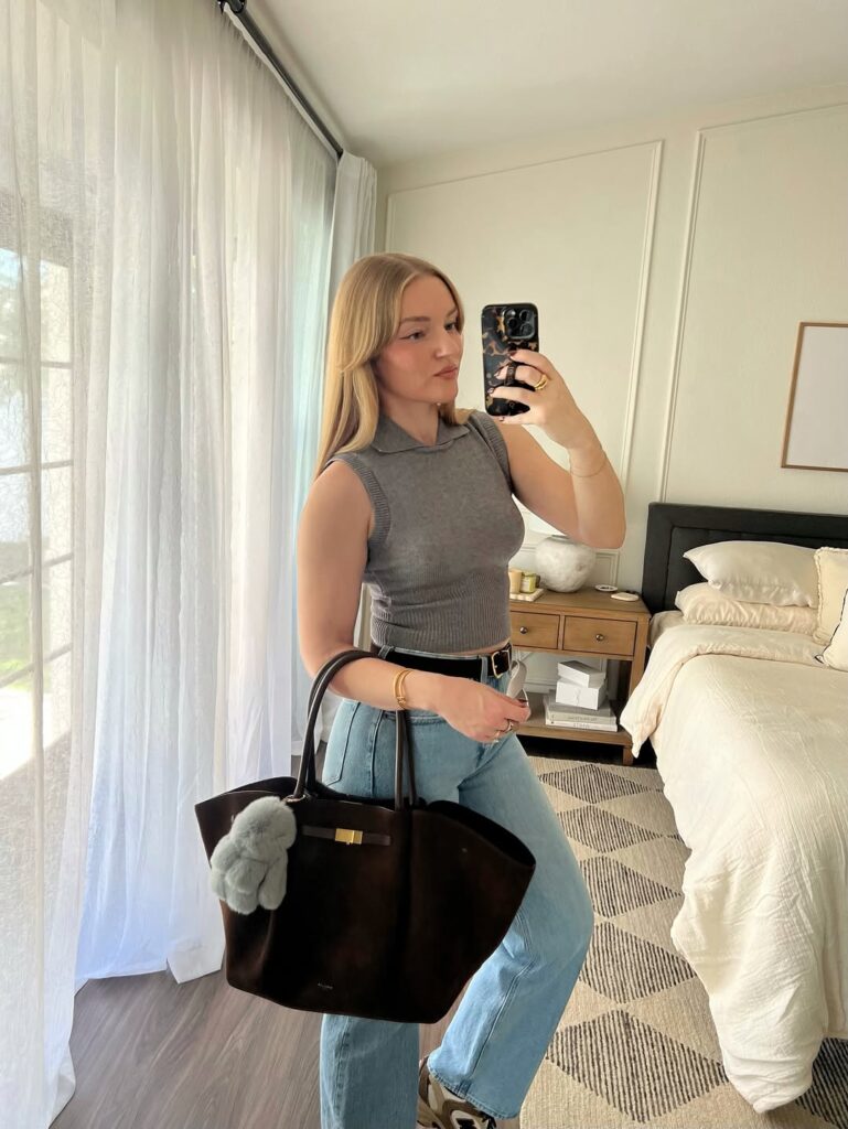 Minimalistic and smart, this pairing is perfect for warm days or relaxed office settings. The ribbed sleeveless polo offers clean sophistication, while the light-wash denim introduces comfort and ease. It’s an ideal look for brainstorming sessions, coworking spaces, or moments when you want a polished but unfussy outfit. Despite its simplicity, the look remains elevated and trend-aware.