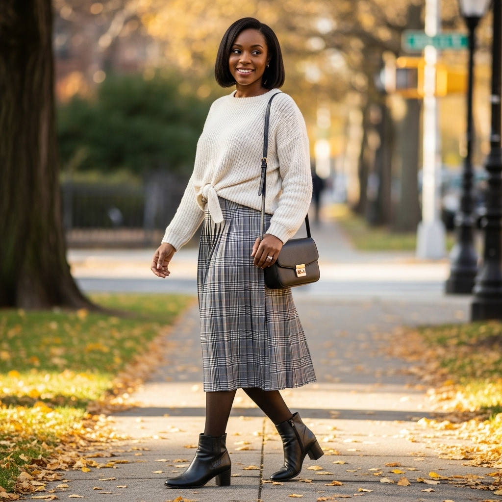 20. Plaid Skirt with Neutral Knit