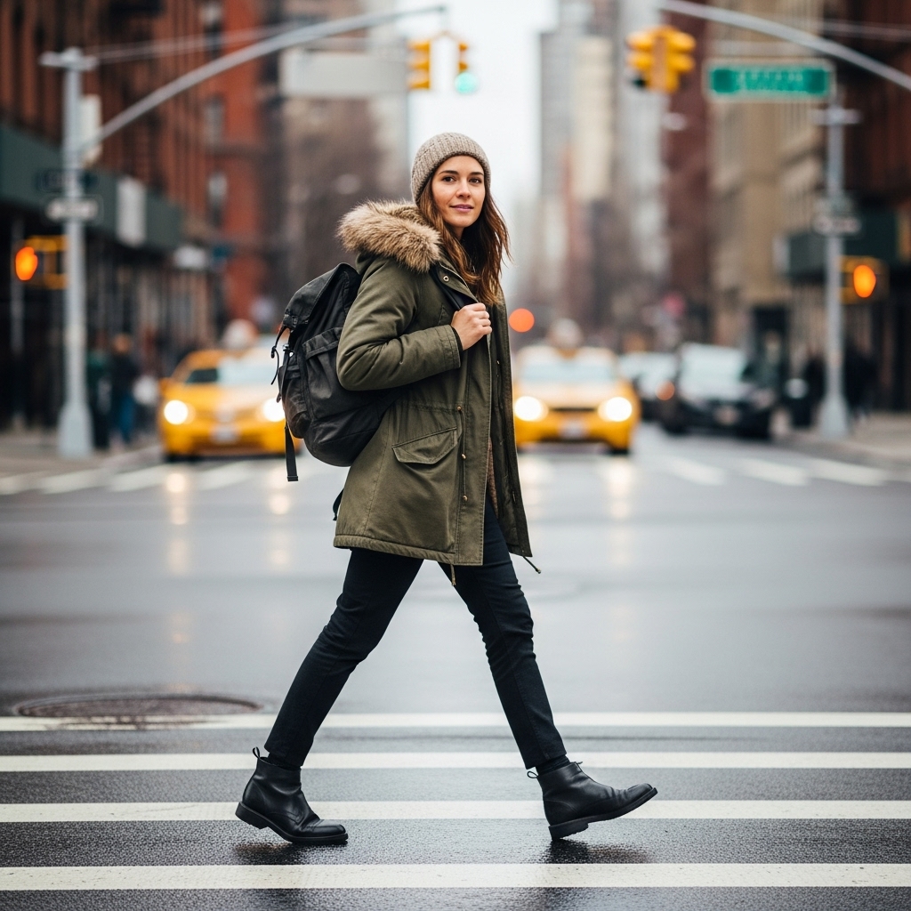 For colder fall days, opt for a parka jacket layered over skinny pants and boots. This look is functional, warm, and perfect for long city commutes. Choose neutral shades like olive or black for versatility. A knitted beanie or scarf adds a cozy finishing touch without taking away from the urban vibe.