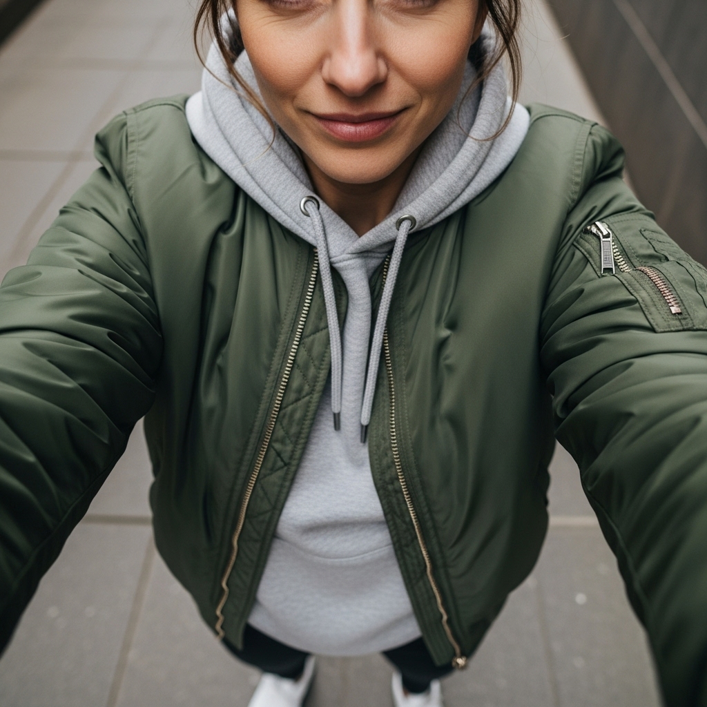 Opt for a bomber jacket layered over a hoodie with skinny jeans for casual city vibes. White sneakers or combat boots finish the look effortlessly. This outfit strikes the right balance between comfort and street-style chic, ideal for days you’re constantly on the move. Choose neutral shades for versatility or bold colors for impact.