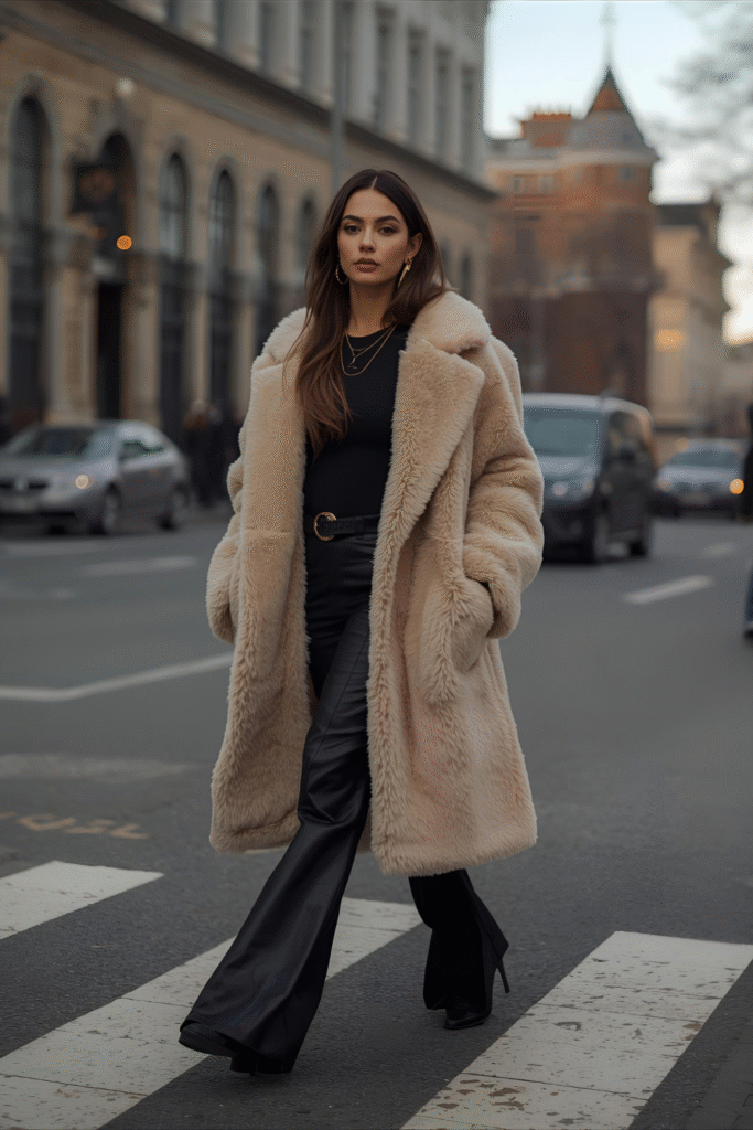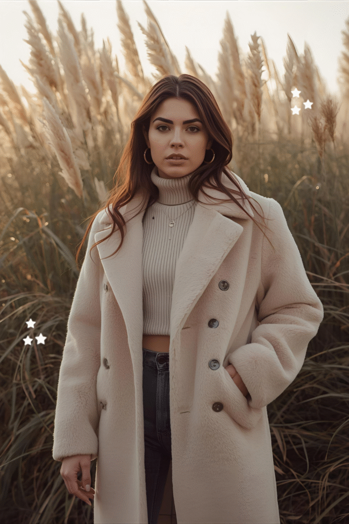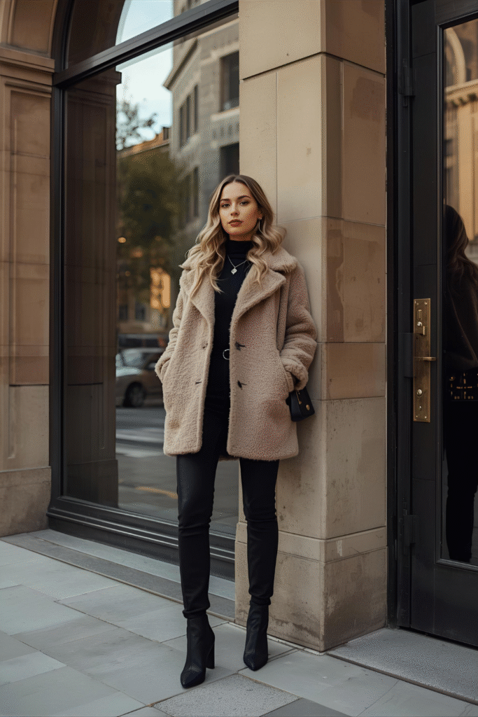 Bring a hint of glam to your cold-weather style without going overboard. Choose soft hues, cozy layers, and subtle shimmer for an elevated, feminine touch. These cold winter outfits are ideal for nights out or weekend getaways where you want to shine gracefully.