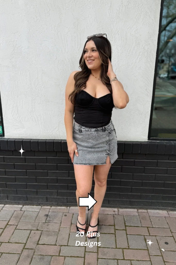 20. Corset Bustier Top with Lace-Up Denim Skirt