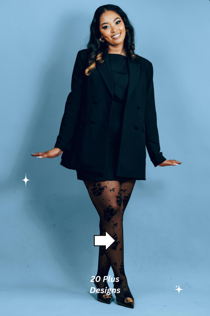 1. Black Blazer Mini Dress with Floral Lace Tights
