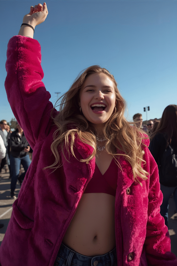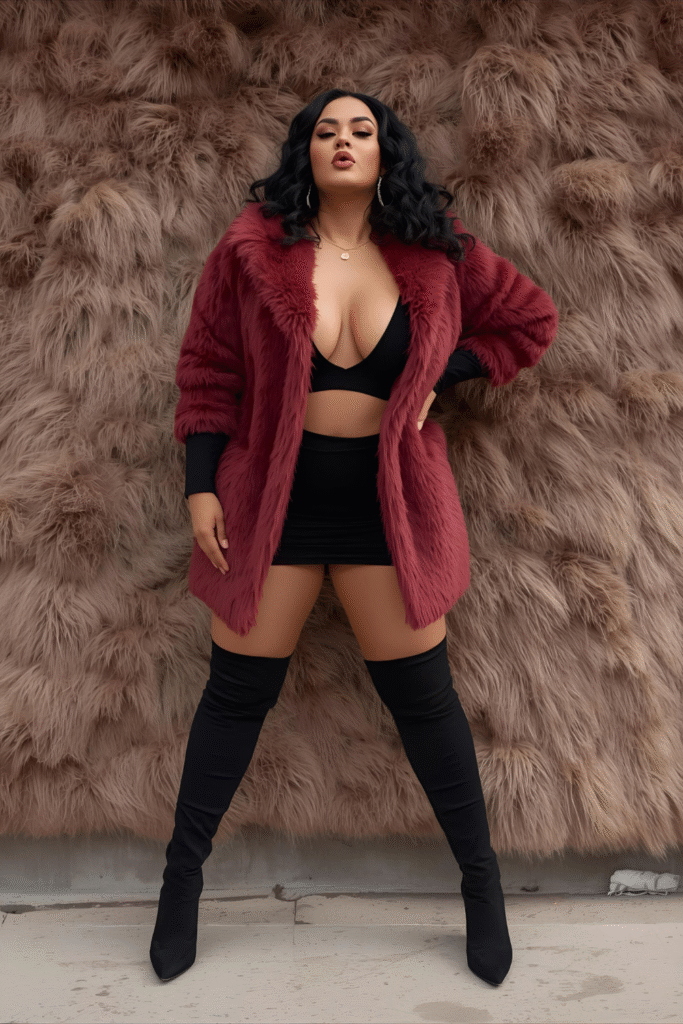 Faux fur instantly adds luxury to any concert outfit. It keeps you warm while giving off effortlessly chic energy. Pair it with sleek pieces underneath to balance the texture. You’ll look put-together yet comfy, perfect for those chilly winter nights dancing to your favorite tracks.