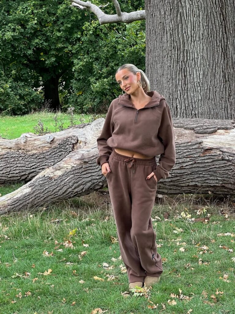 A cozy brown loungewear set is the definition of elevated comfort. With soft, relaxed silhouettes and warm, earthy tones, this outfit delivers a cocoon-like feel while still looking polished enough to wear beyond the house. The matching top and bottoms create a unified, harmonious look that feels effortlessly put together. It’s ideal for working from home, quiet weekends, or long travel days where ease is essential. The rich brown hue adds sophistication, ensuring the outfit remains stylish even in its most relaxed form.