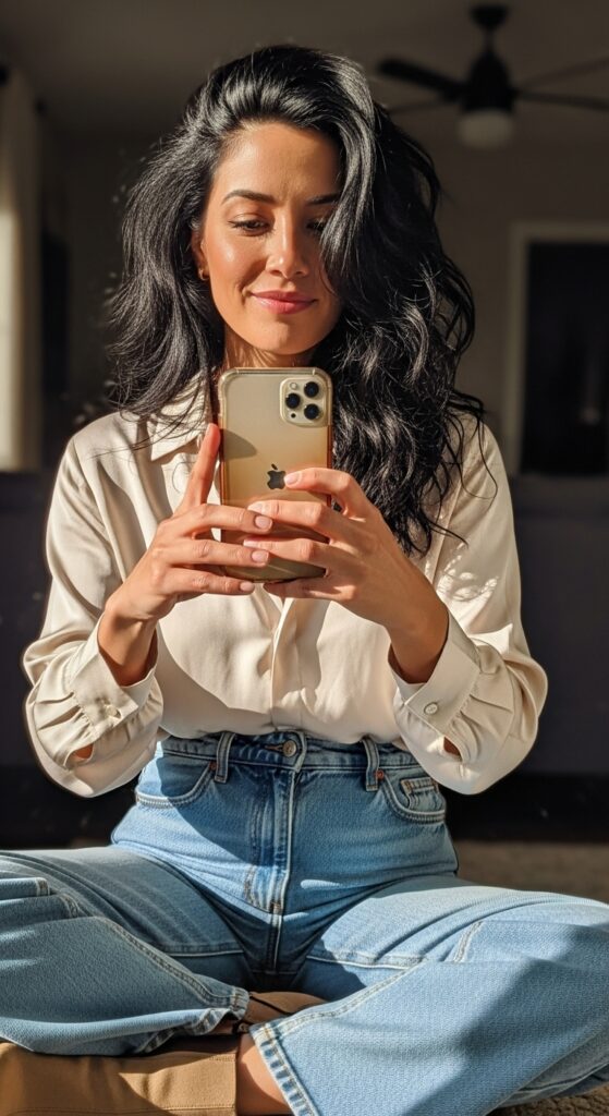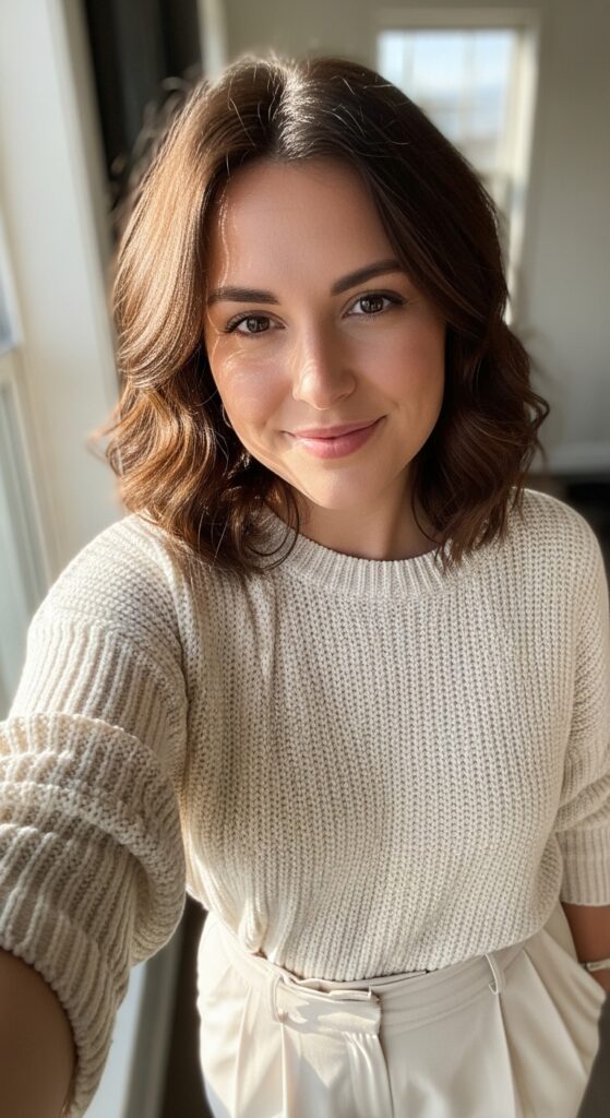 A pleated or satin midi skirt paired with a fitted knit sweater is the definition of fall elegance. Tuck in the sweater to highlight your waist and finish with heeled ankle boots. Layer delicate necklaces or a belt for added detail. Feminine yet cozy, this outfit is versatile enough for work, casual outings, or evening plans, making it one of the most pinned fall outfit ideas.