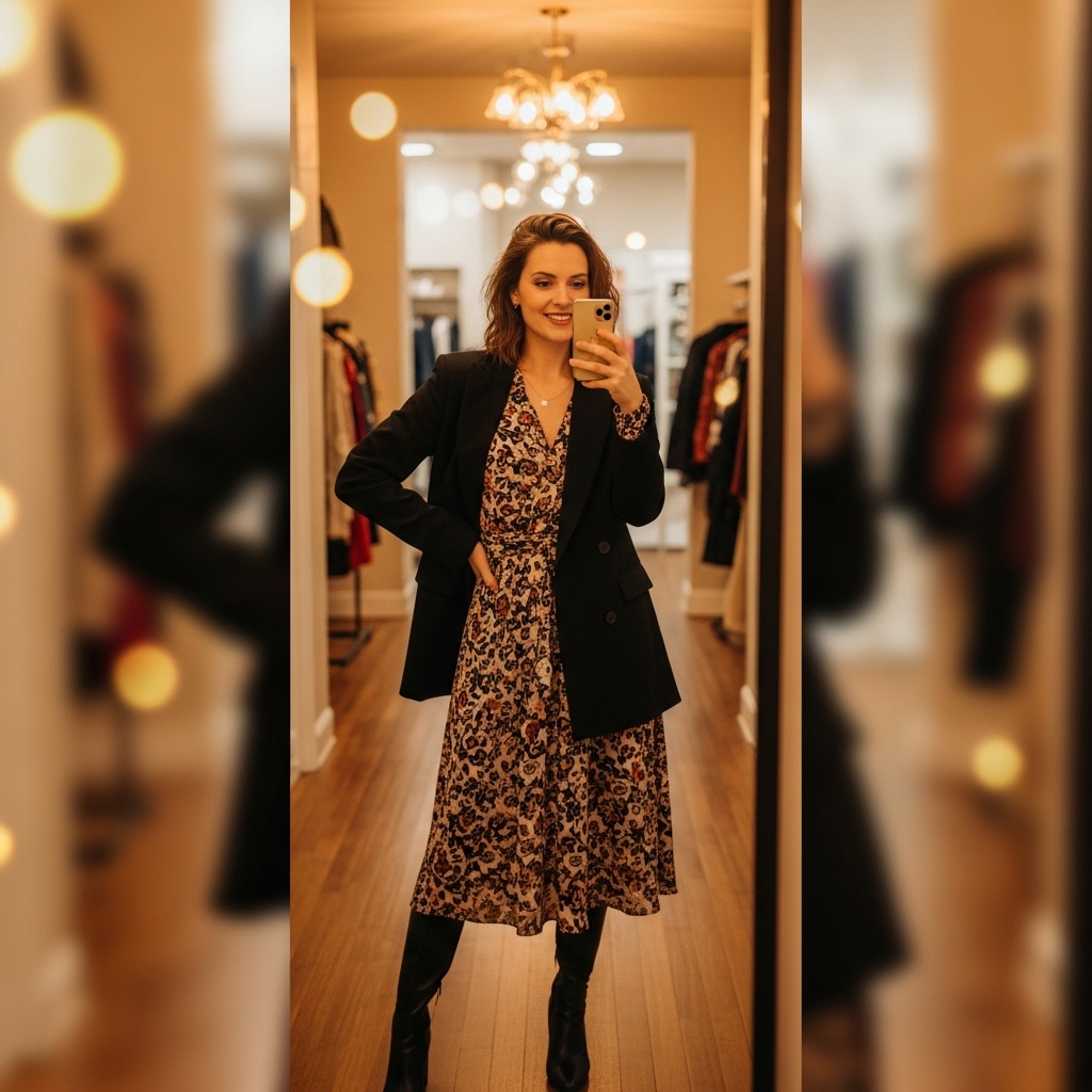 Upgrade your fall dresses by layering a structured blazer on top. This instantly creates a business casual silhouette while adding warmth. Go for prints like plaid or polka dots under solid blazers for visual contrast. Pair with heeled boots or loafers for a finished look.