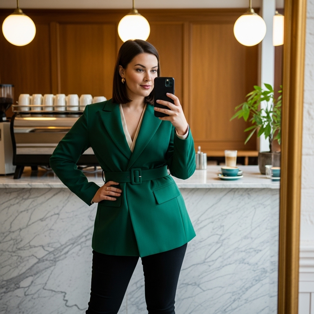 A belted blazer defines your waist and adds a polished touch to any outfit. Pair it with black skinny trousers or slim-fit pants and sleek boots. This look is professional yet trendy — ideal for networking events or presentations in the fall season.