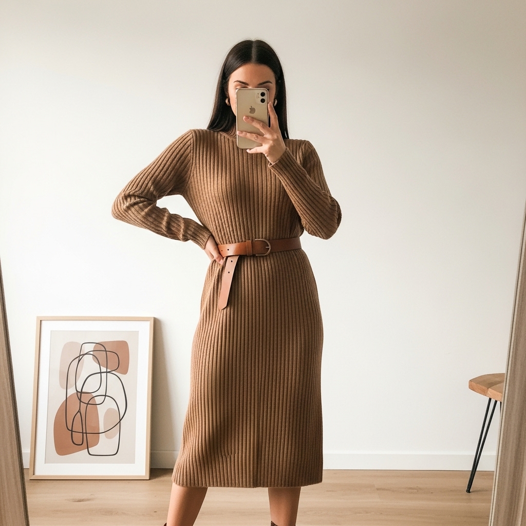 A fitted knit dress belted at the waist offers warmth and sophistication in one. Opt for ribbed or cable-knit styles in fall colors like camel, forest green, or wine. Add heeled boots and simple jewelry for a timeless, feminine workday look.