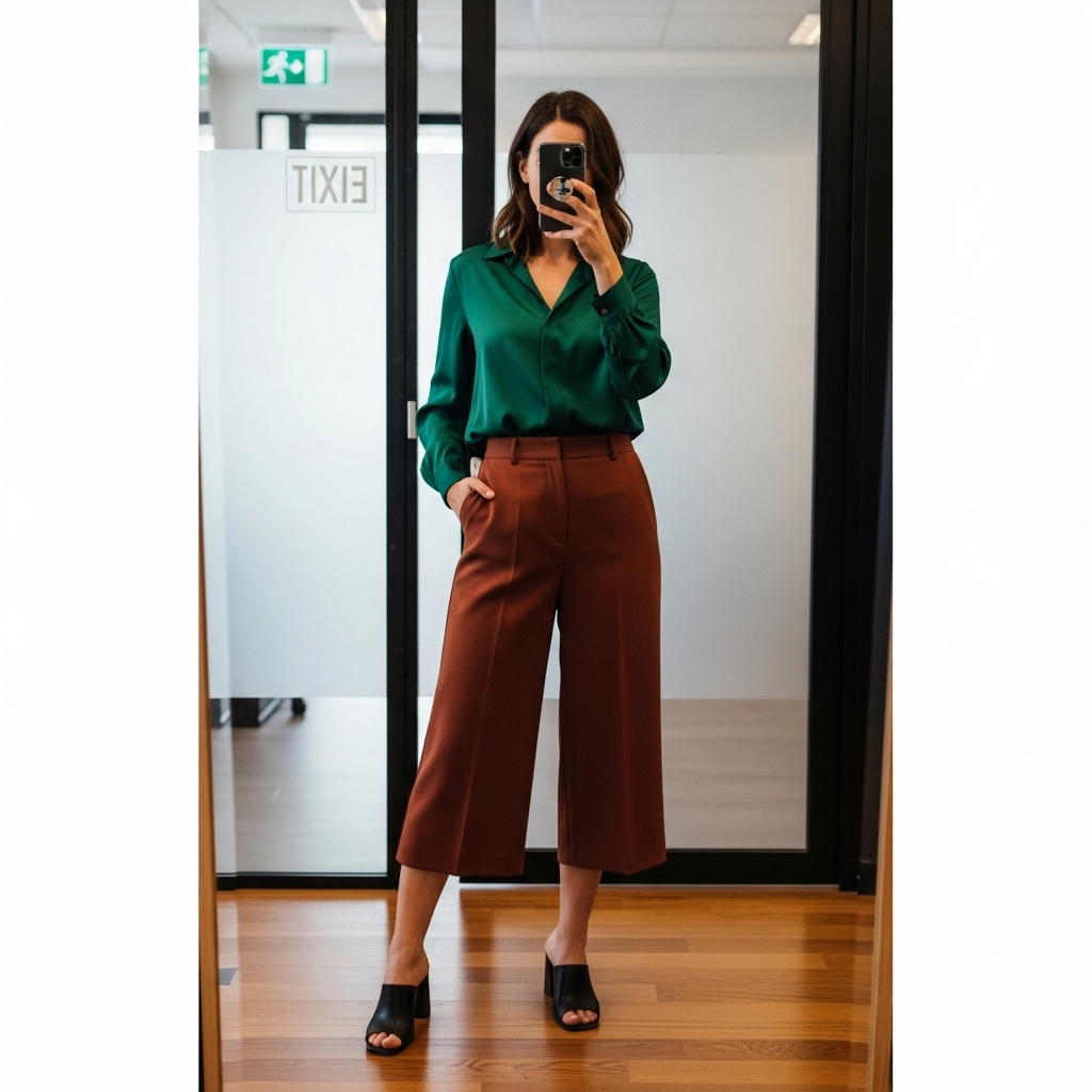Culottes are ideal for early fall days when full trousers feel too warm. Pair them with a silky blouse tucked neatly in, and add loafers or block heels. Choose autumn hues like rust, mocha, or olive to make the look seasonally stylish yet professional.