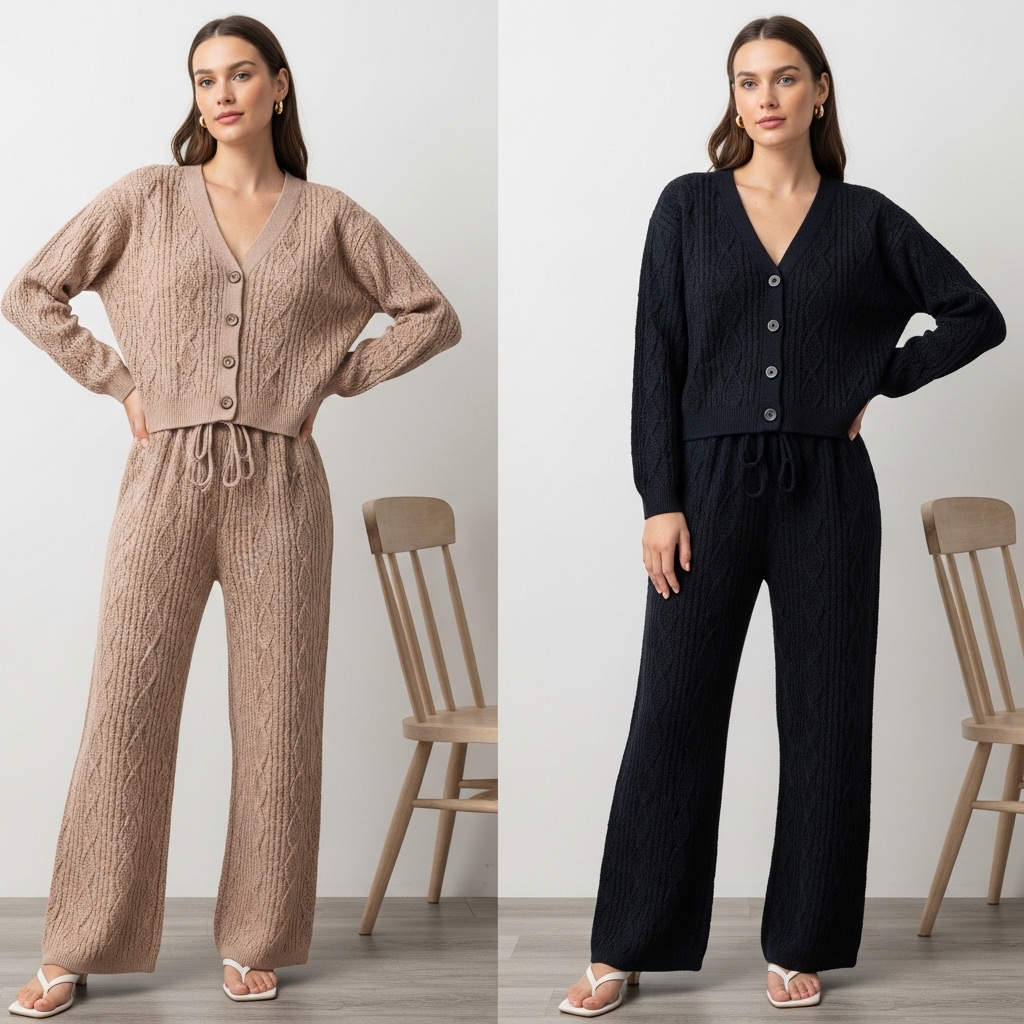 A matching knit set instantly looks put-together while offering unbeatable comfort. Go for a neutral or deep tone, and pair with loafers or pointed flats. Add a tote bag and simple accessories to keep the look clean and professional for fall office days.