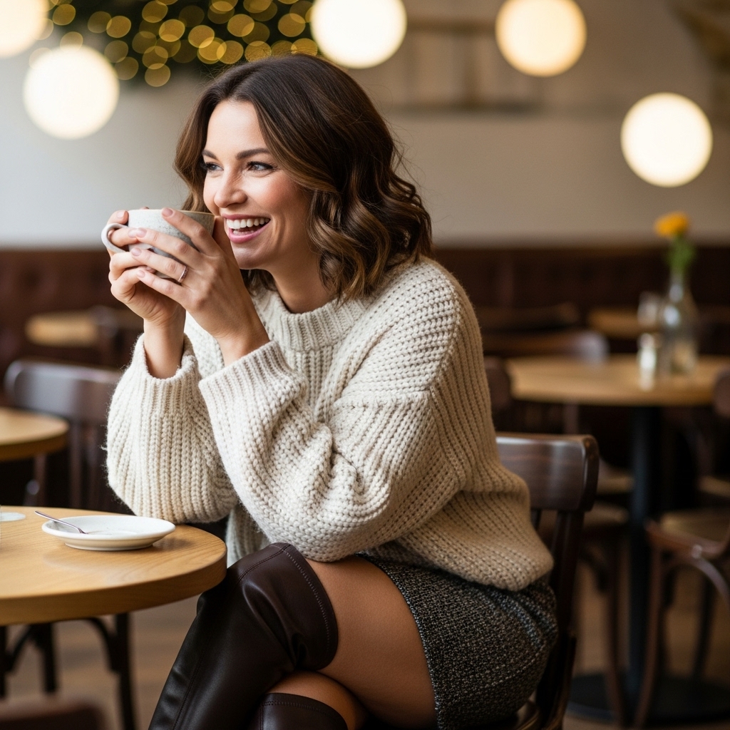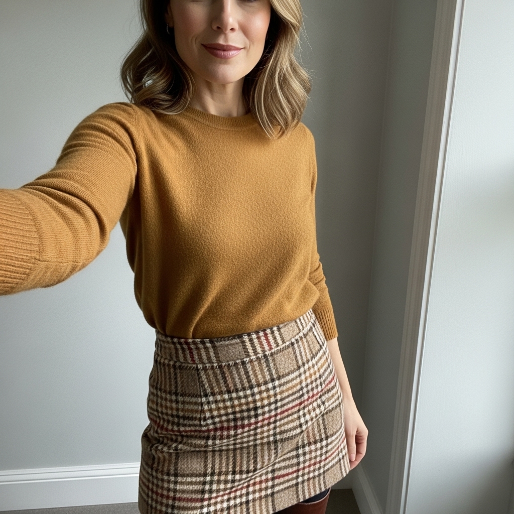 Wool skirts paired with tall boots make a chic and warm fall combination. Choose skirts in plaid or houndstooth patterns for a seasonal touch. Pair with a fitted sweater or turtleneck to balance the look. This outfit feels classic yet fashionable, perfect for outings that call for a little more effort without being over the top.