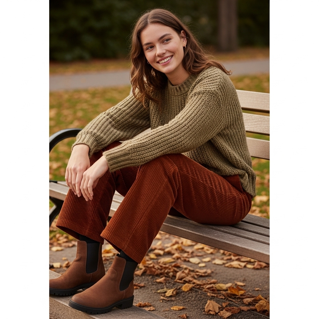 Corduroy pants bring warmth and texture to fall fashion. Style them with a knit sweater and loafers for a chic, vintage-inspired outfit. Add a beret or structured coat for extra flair. This cozy yet stylish look is perfect for autumn walks, coffee runs, or casual days at work.