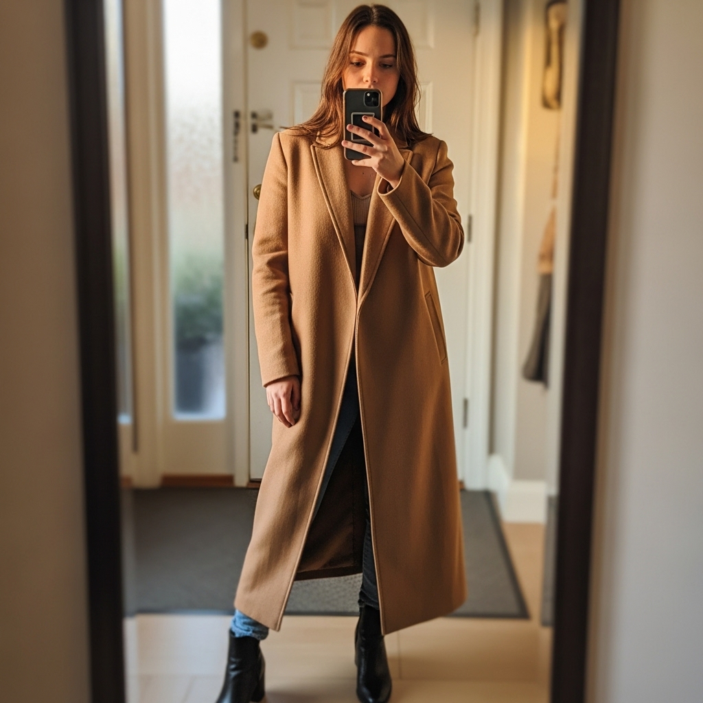A longline coat instantly adds sophistication to any casual outfit. Throw it over jeans, a basic tee, and ankle boots for a chic, polished look. Neutral coats like camel, grey, or black are versatile and timeless. This outfit is ideal for running errands in style or grabbing brunch on a crisp fall morning.