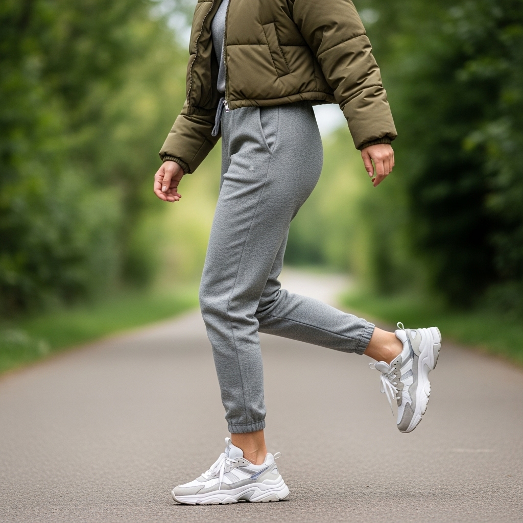 Stay cozy and trendy by pairing a cropped or long puffer jacket with joggers. This athleisure-inspired outfit is practical yet stylish for the fall season. Add sneakers or combat boots to complete the look. Stick with darker colors for the pants and choose puffer jackets in bold shades like deep red or olive for seasonal flair. This plus size fall outfit is ideal for travel or laid-back weekends.