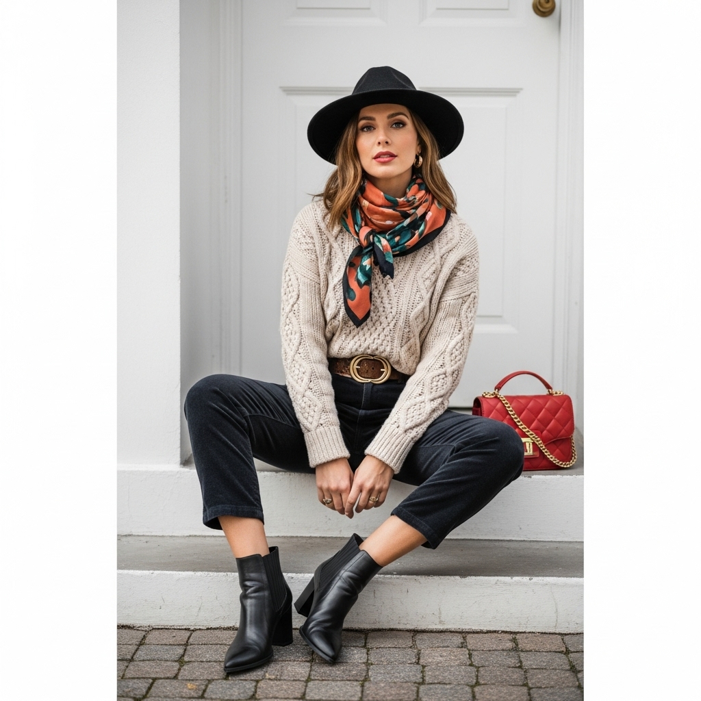 Cable knit sweaters are a fall must-have, and they look great with corduroy pants. This textured pairing adds warmth and seasonal charm. Go for earthy corduroy shades like brown, rust, or olive, and balance with a neutral-toned sweater. Add ankle boots or loafers for the perfect finish. This plus size fall outfit is cozy, practical, and versatile for casual and semi-formal settings.