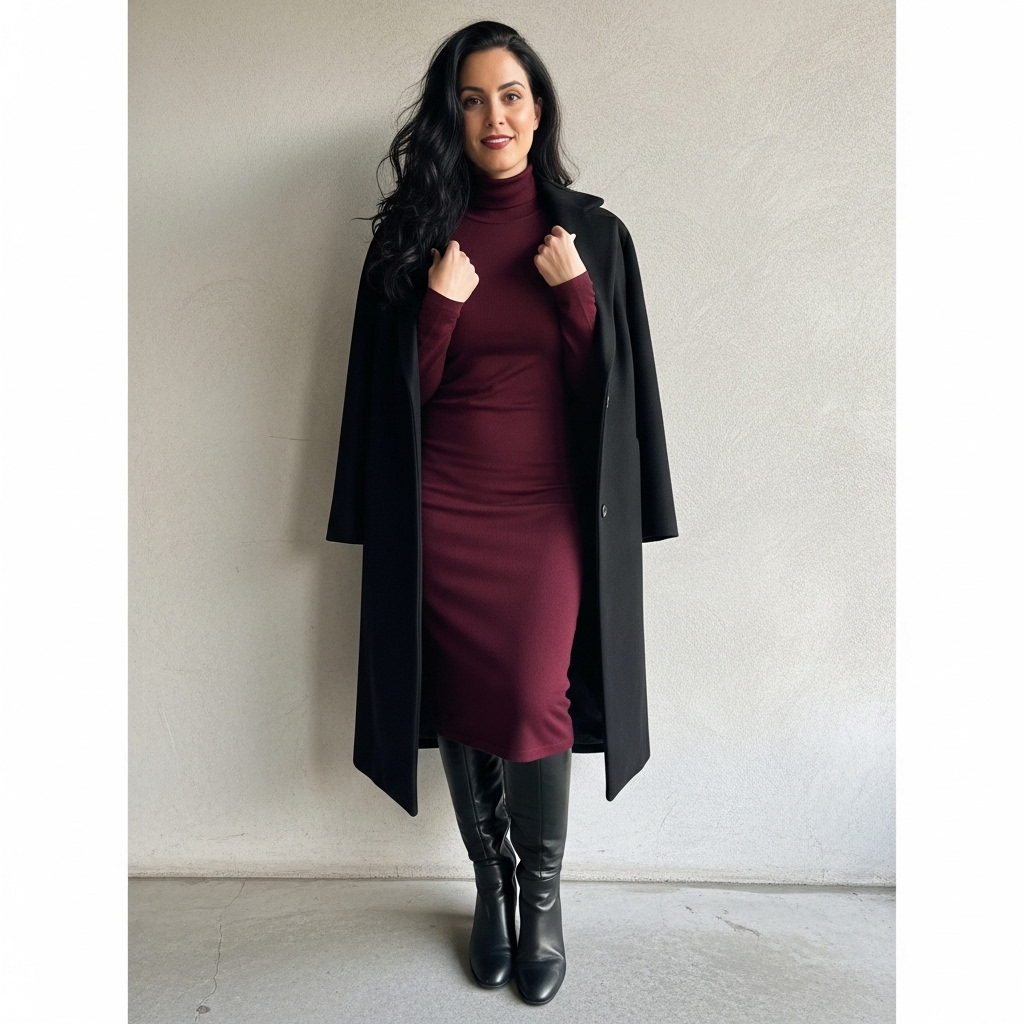 A fitted turtleneck dress hugs curves beautifully while offering comfort and warmth. Style it with knee-high boots for an elevated look that’s both chic and practical. Add a long coat or oversized scarf for layering. Burgundy, deep green, and rust tones work perfectly for the fall season. This plus size fall outfit transitions easily from day to night, making it versatile for multiple occasions.