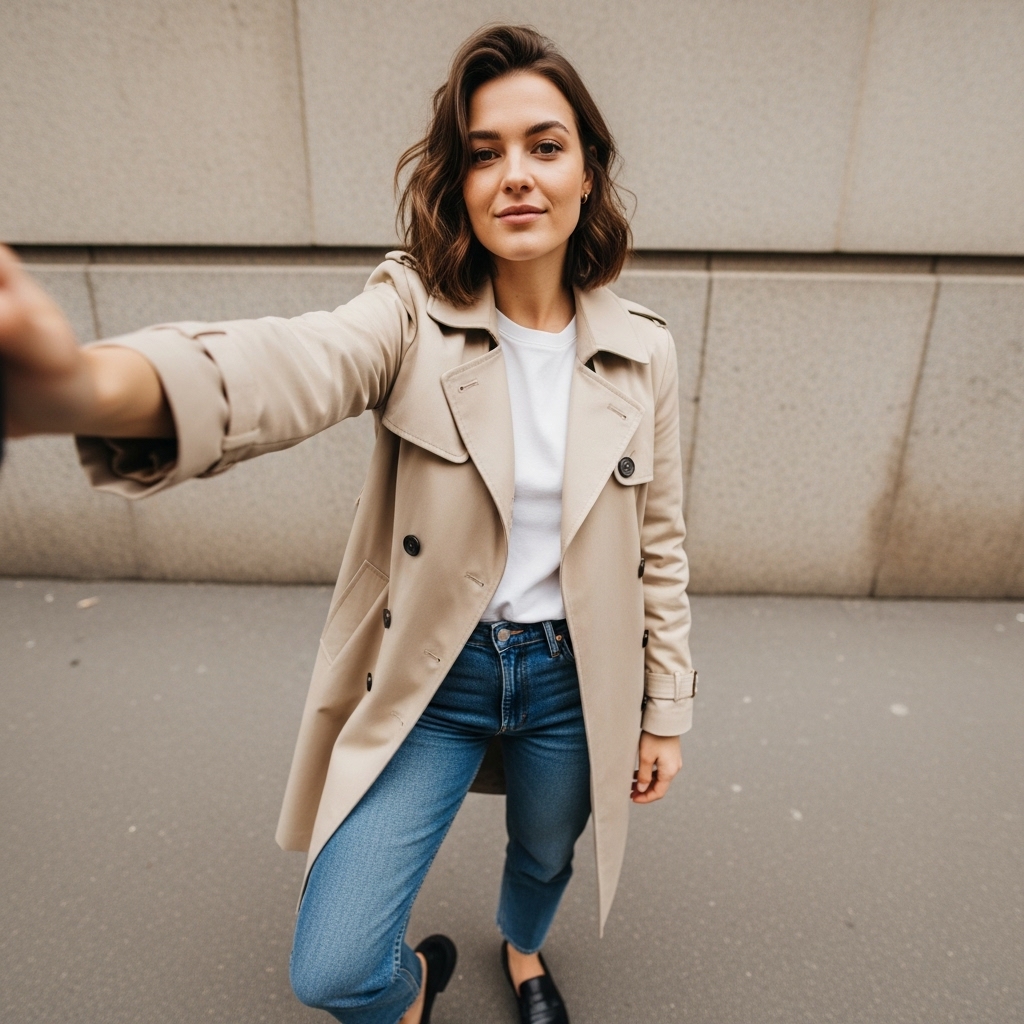 A classic trench coat is a timeless fall essential. Pair it with straight-leg jeans and a simple top for a polished yet comfortable outfit. Neutral trench coats like beige or tan always look chic, while adding a scarf gives extra seasonal flair. Wear loafers or ankle boots to finish the look. This plus size fall outfit is sophisticated enough for office wear and practical for everyday life.