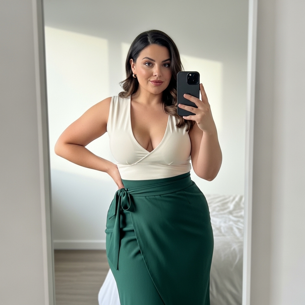 A wrap skirt flatters every body type, and it’s ideal for fall when styled with a fitted ribbed top. Choose earthy hues like olive or camel and finish with ankle boots. The layered wrap detail adds movement and depth — perfect for photos and daily wear alike.