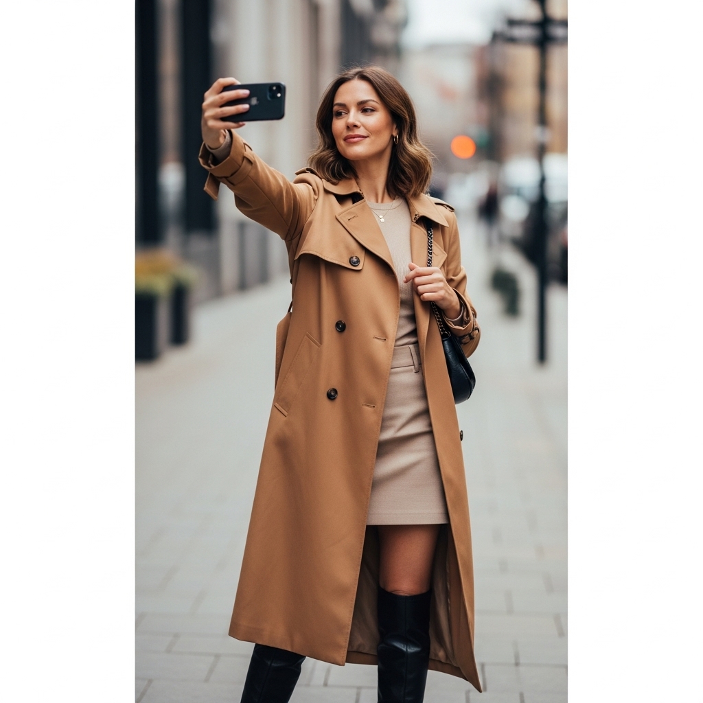 For that Pinterest-worthy look, pair a neutral mini skirt with a long trench coat. Add a simple top and knee-high boots for balance. The contrast of short and long layers adds drama, while the coat keeps the look warm and sophisticated — perfect for cool fall evenings.