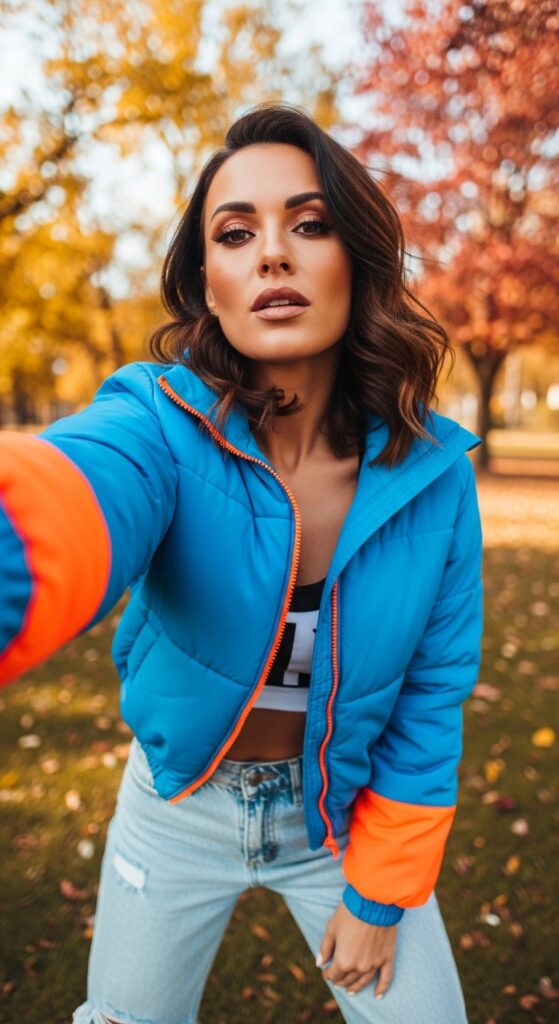 Boyfriend jeans and puffer jackets are perfect for chilly fall days. Go for neutral or bold-colored puffers depending on your mood. Pair with sneakers or boots for comfort. Add a beanie or scarf to complete the look. This outfit blends warmth and casual street style, making it practical and trendy for everyday wear during autumn.