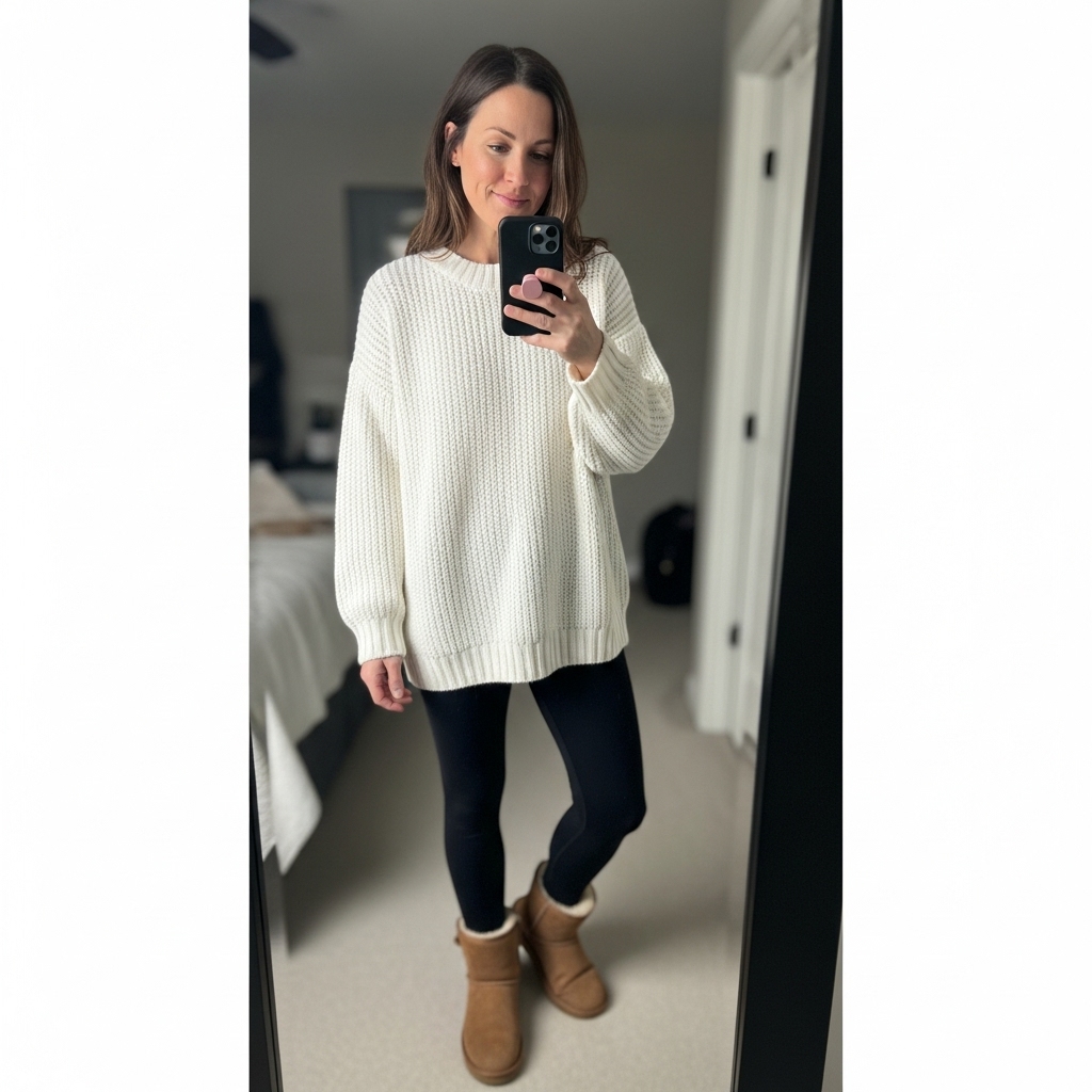 Pairing a chunky oversized sweater with classic Ugg boots creates the ultimate cozy fall outfit. This look balances casual comfort with a touch of style, making it ideal for lazy mornings or coffee runs. Add skinny jeans or leggings to keep proportions sleek and flattering. Accessorize with a crossbody bag for an effortlessly stylish finish that feels timeless yet seasonally appropriate.