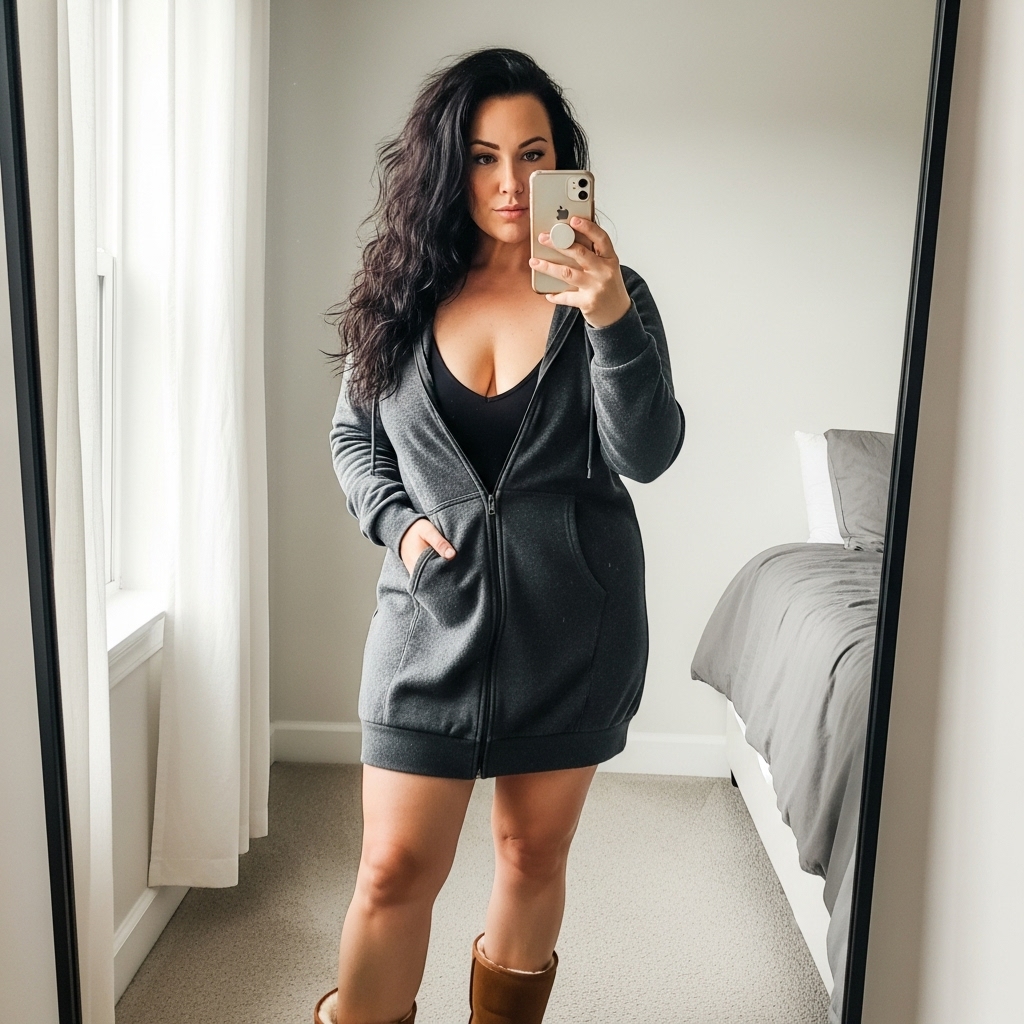 A hoodie dress with Uggs creates a sporty yet stylish lazy-day outfit. This look is as comfy as loungewear but elevated enough for errands or coffee dates. Stick to neutral colors for versatility or experiment with fall hues like burgundy or mustard. Add a baseball cap or tote bag for a trendy finish. It’s an easy one-and-done look that’s both practical and chic.