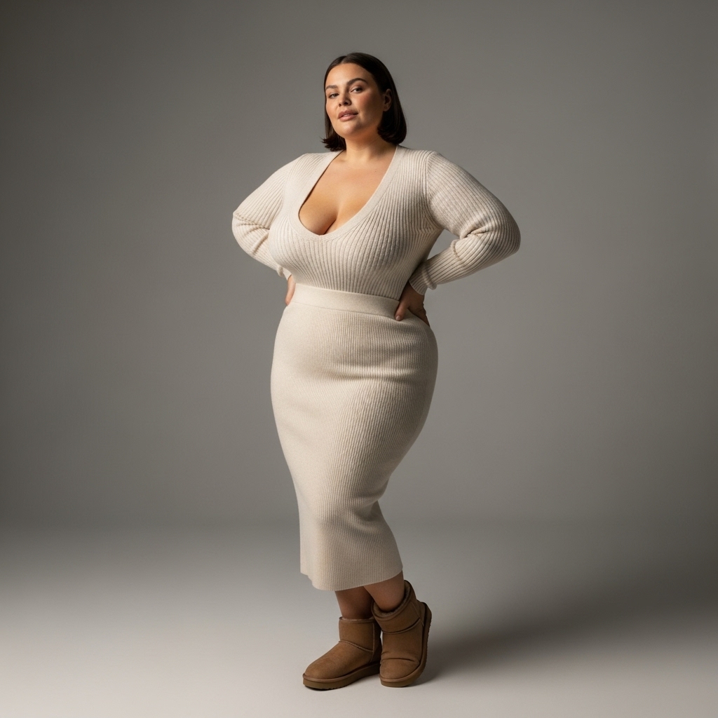 A cropped sweater with high-waisted jeans or leggings paired with Uggs creates a modern yet cozy outfit. The cropped length keeps proportions balanced, especially with chunkier boots. Opt for fall colors like olive, burgundy, or caramel for seasonal appeal. Throw on a light jacket for extra layering. This look is youthful, stylish, and perfect for crisp autumn days when comfort is key.