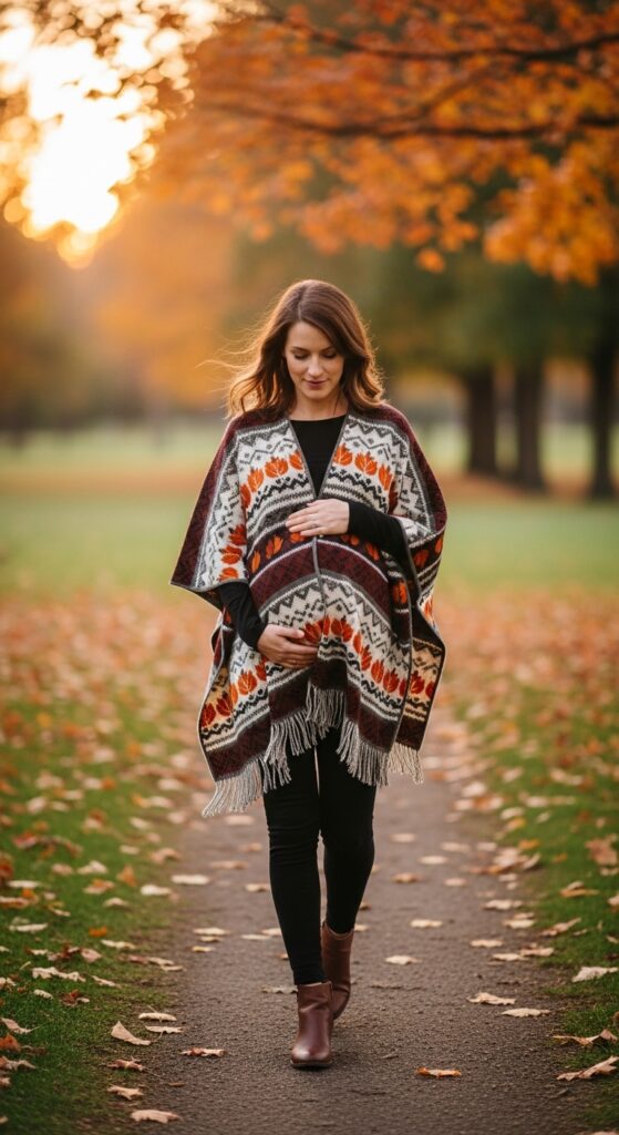 Ponchos are fall staples—pair one with leggings and boots for a stylish layered outfit.