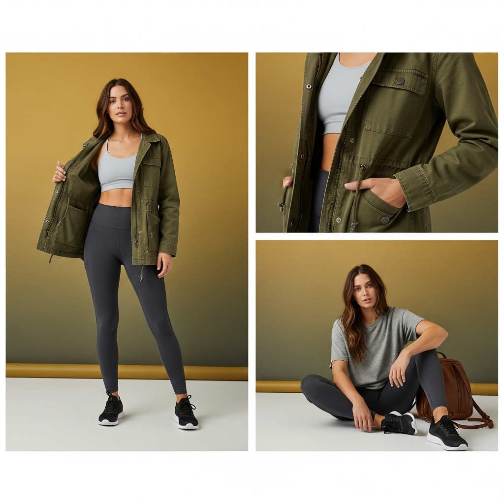 For effortless everyday style, grab a utility jacket and pair it with black leggings and a fitted top. It’s practical, comfortable, and easy to accessorize. Add sneakers for a casual vibe or combat boots for a bit of edge — ideal for running errands or coffee dates.