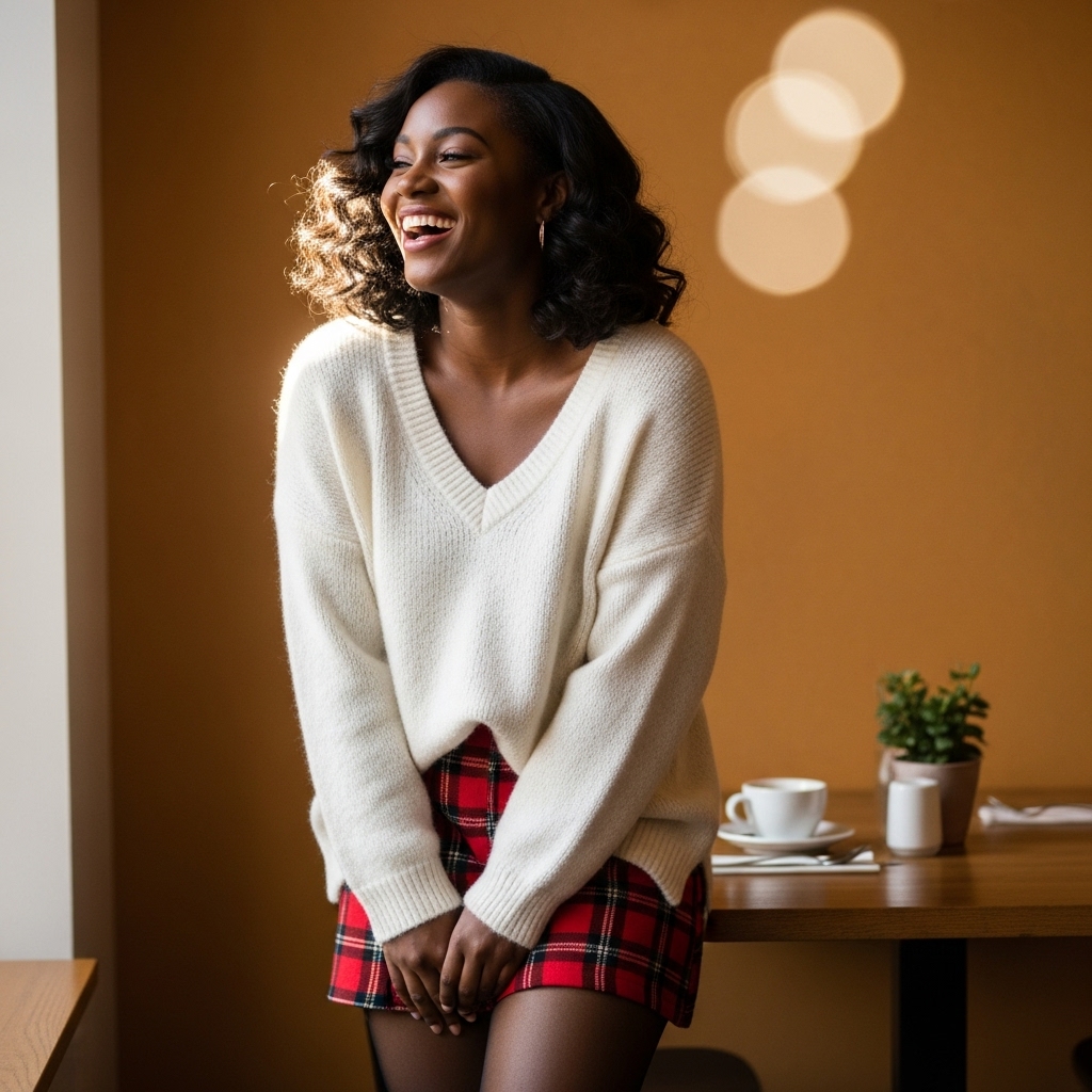 Channel fall academia style with a plaid mini skirt and a cozy sweater. Add tights and loafers to complete the look. The plaid pattern feels timeless and instantly autumnal — great for casual outings or cozy study sessions at your favorite café.