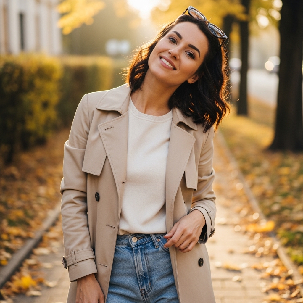 The double-denim trend is back and better for fall. Pair a light denim shirt with darker jeans to create contrast. Layer a neutral trench or knit scarf for extra warmth. It’s an easy, classic, and endlessly wearable look for transitional days.