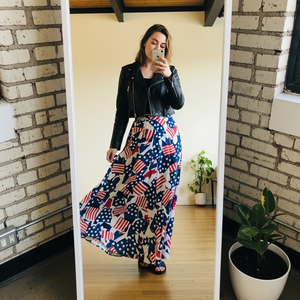 Balance edgy and feminine by pairing a classic black leather jacket with a flowy maxi skirt. The mix of textures keeps your outfit interesting. Choose neutral or earthy tones for a seasonal vibe. Add ankle boots or sneakers — this look works from daytime adventures to night outings.