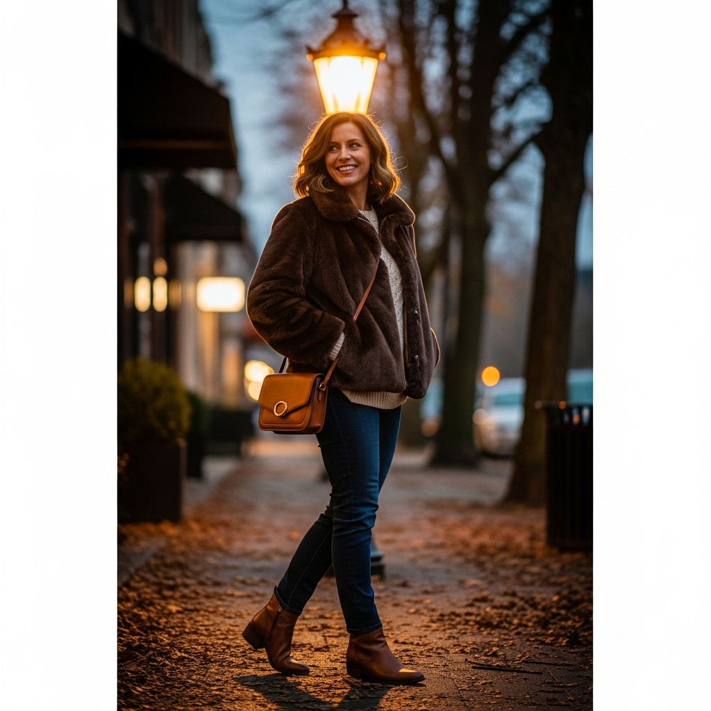 Soft, plush, and luxurious, faux fur jackets add instant glamour to any fall outfit. They’re warm, stylish, and perfect for cooler evenings. Pair with high-waisted jeans and ankle boots for casual chic or drape over a dress for a night out. Stick to classic colors like cream, beige, or dusty pink for elegance. This trend is perfect for those who love cozy comfort with a hint of high-end sophistication.